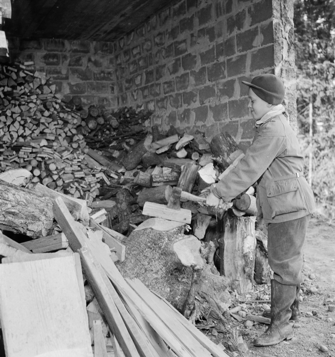 Adam Alsing Hugger Ved , Pojke Hugger Ved Vid Urmakare Hemlins Sommarstuga Vid Ekoln, Uppland 1953 - Upplandsmuseet ...